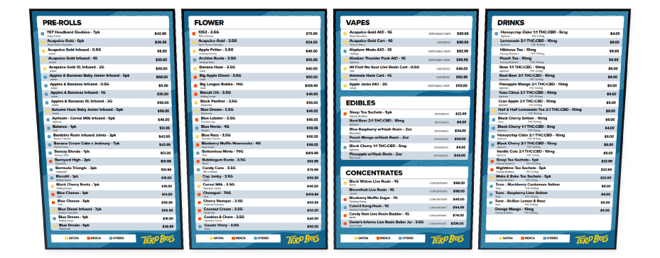 Terp Bros, located in Queens, New York, is much more than just a dispensary; they are a community. Their focus centers on education, personalized attention, and being a true hub for local cannabis enthusiasts. In this Fresh Drop, we show how our custom digital menu design helps Terp Bros maintain that community spirit, ensuring product information is always clear, accurate, and perfectly integrated with our key partner, Dutchie POS.